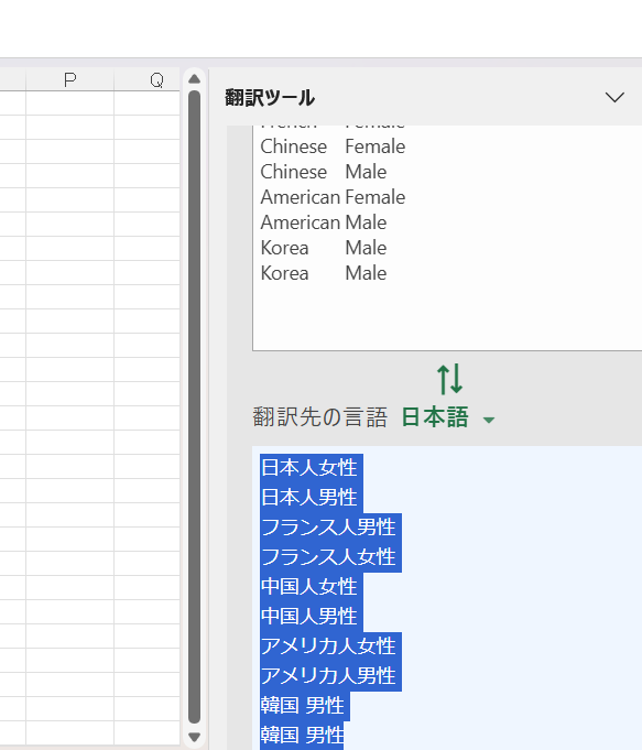 ※記事を書いてからあらためてみると、最初に2列を選択したので、最後に2列分が1列にまとめて翻訳されています。1列選択しておけば最後も1列になるでしょう。